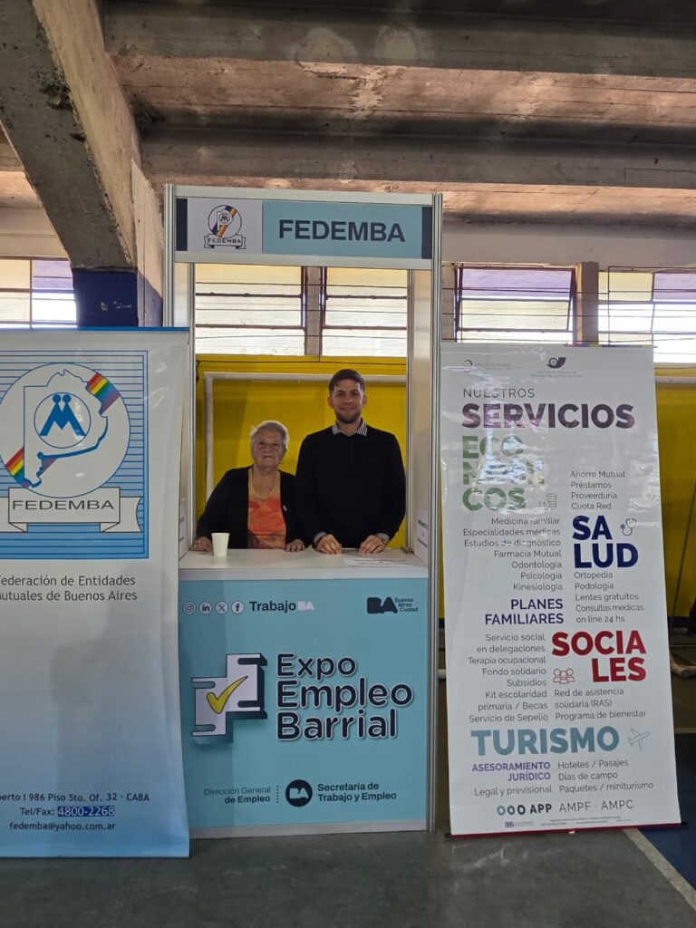 La Federación de Entidades Mutuales de Buenos Aires (FEDEMBA) participó, el pasado 10 de abril, con un stand en la Expo Empleo Barrial, organizada por el Gobierno de la Ciudad de Buenos Aires en el Club Atlético Atlanta, ubicado en Humboldt 340 (CABA), representando al sector mutual junto con más de 15 empresas y organizaciones de primera línea del ámbito privado y estatal.